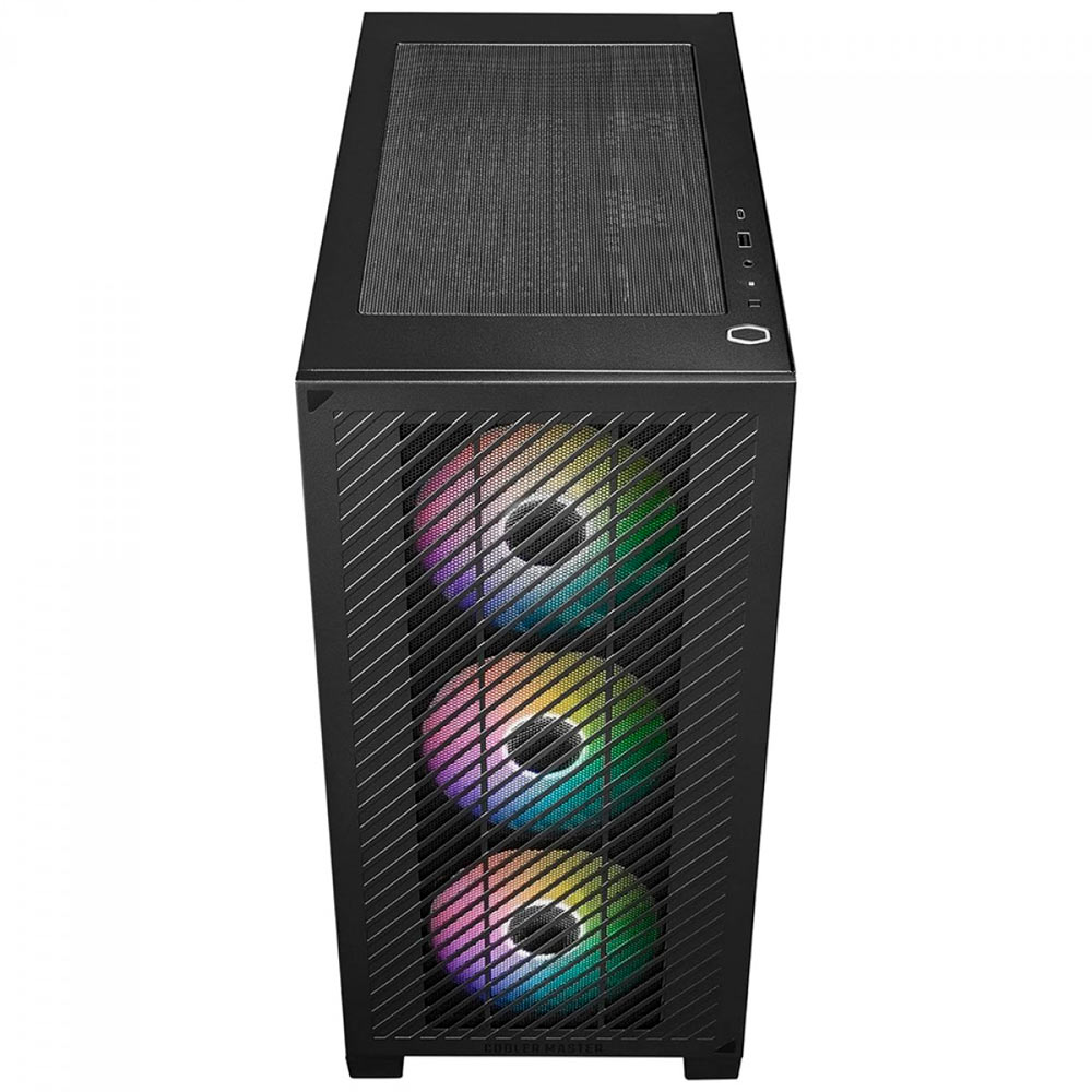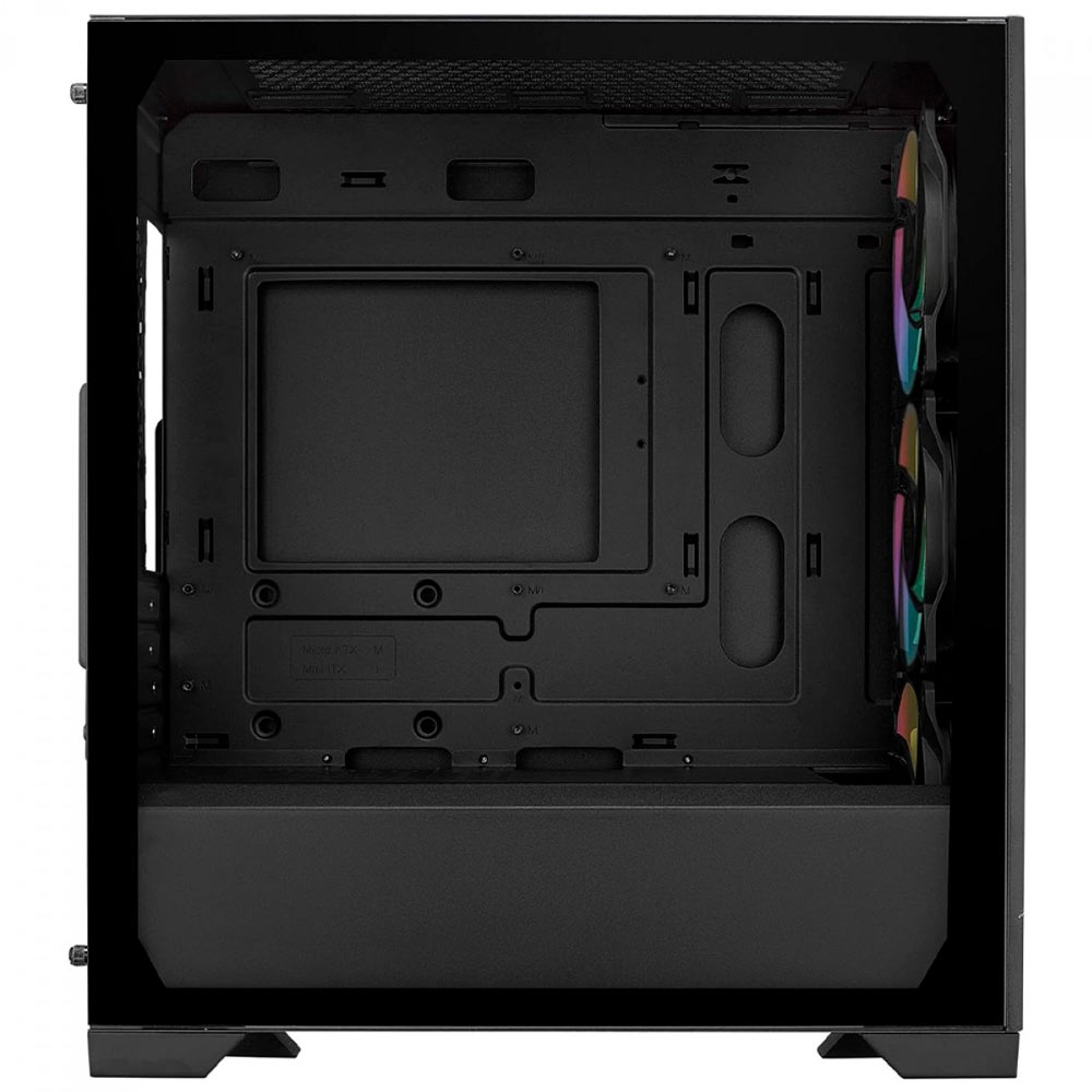 O Elite 301 possui uma ampla grade de entrada e 3 ventoinhas ARGB de 120 mm para garantir um funcionamento suave e eficiente. O revestimento totalmente preto permite montagens limpas, visualmente atraentes e funcionais.